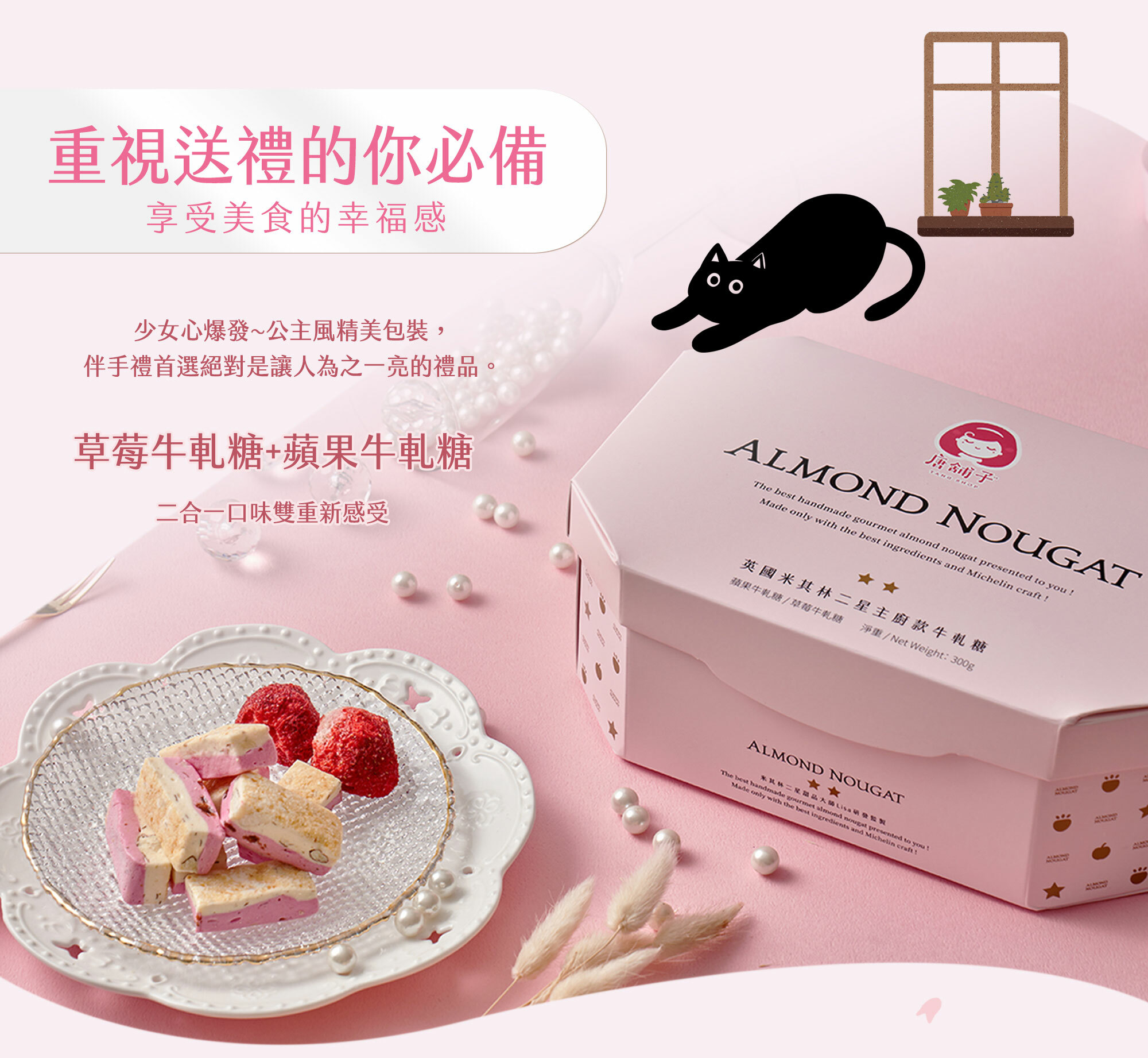 品名:唐舖子 米其林牛軋糖禮盒300g (草莓150g x 蘋果150g)