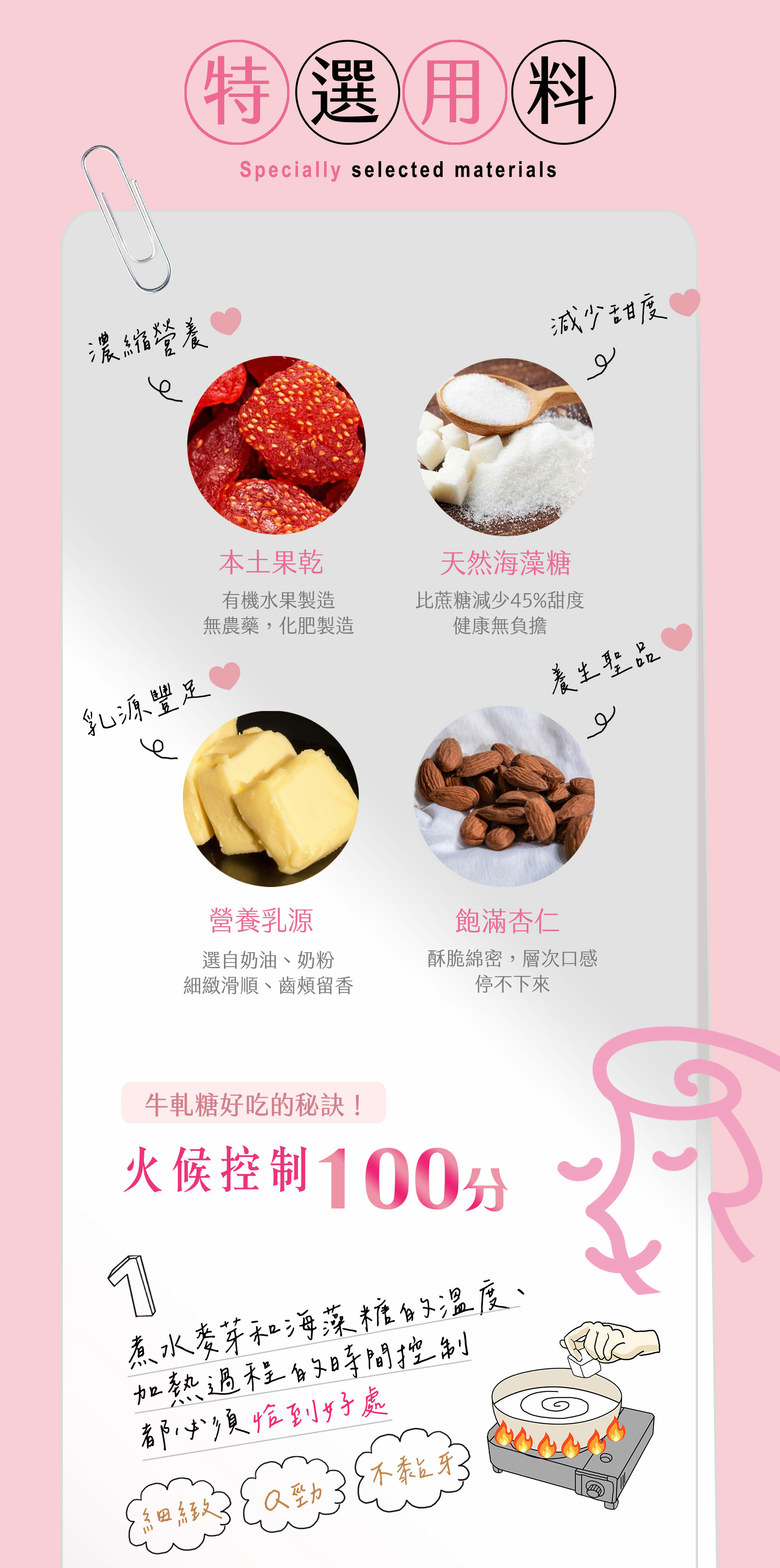 與唐舖子聯名主廚牛軋糖公益禮盒。因為手工製作,所以在有限的產量下,我們只專注做更好、更有特色的產品。