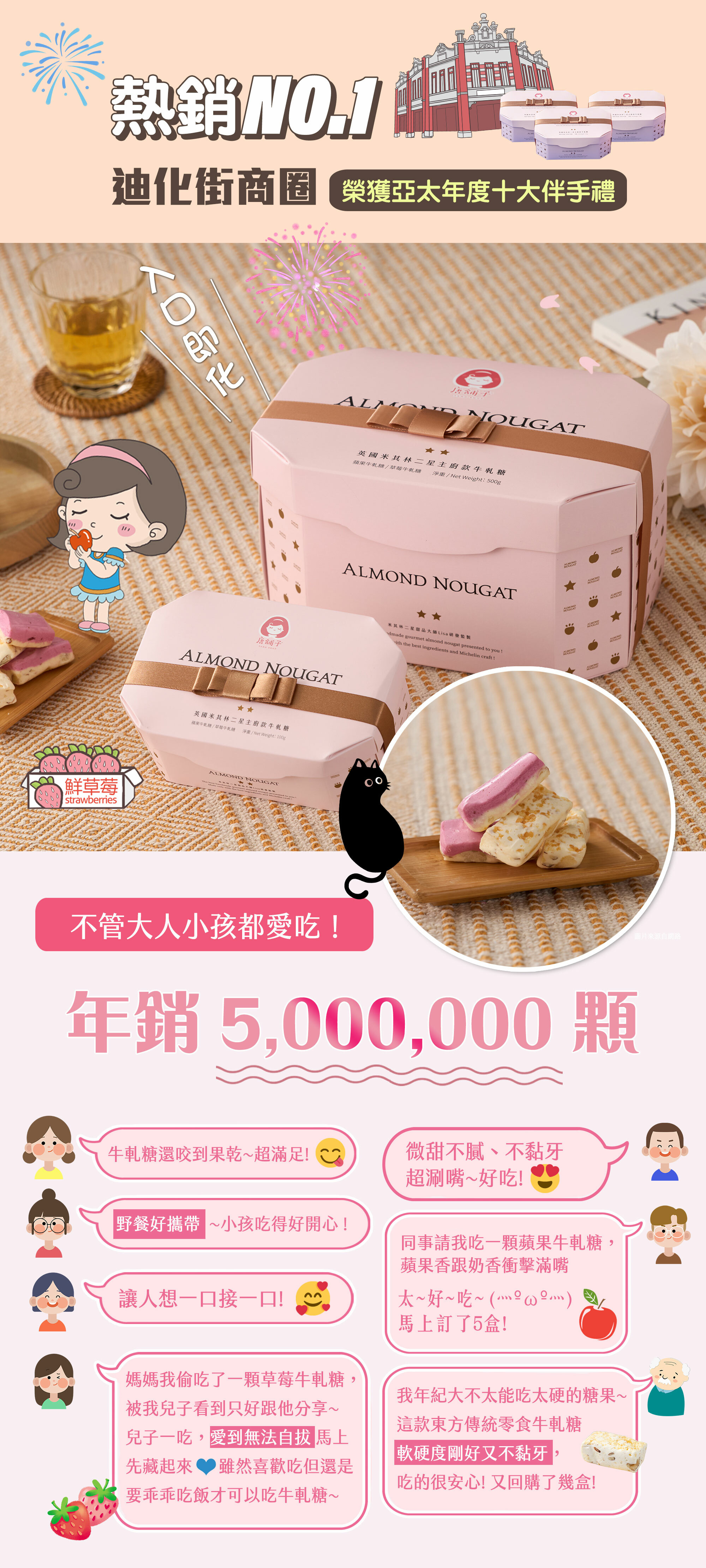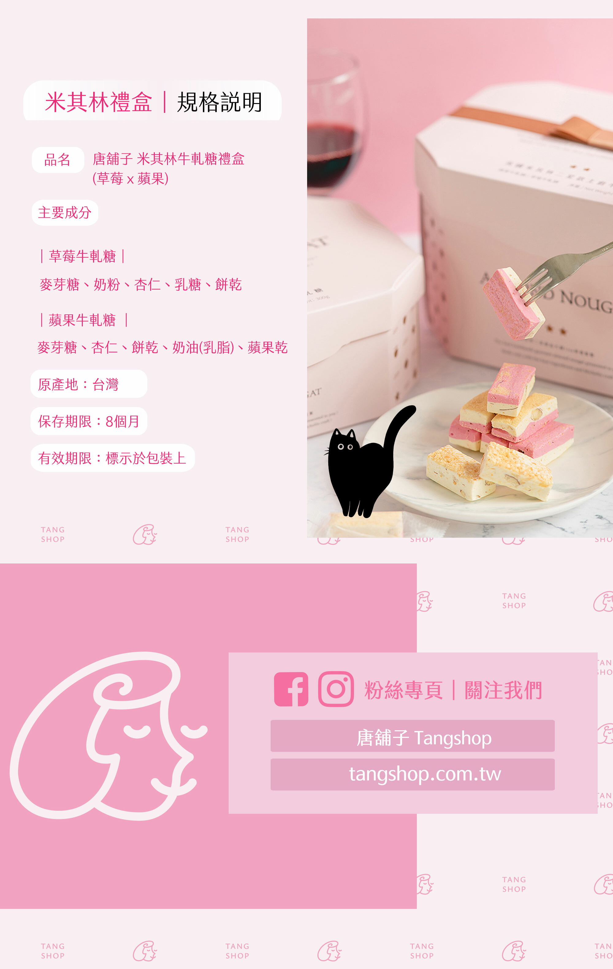 品名:唐舖子 米其林牛軋糖禮盒500g (草莓250g x 蘋果250g)