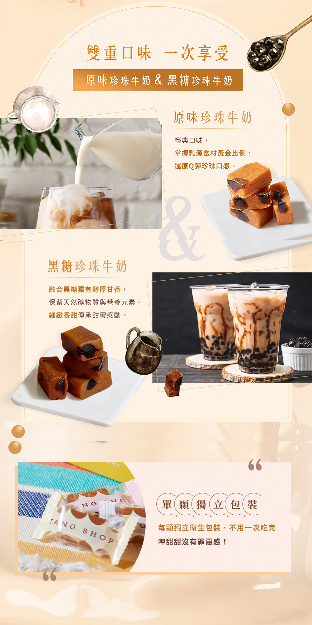 加入製成牛奶糖,每顆都吃的到Q彈珍珠。