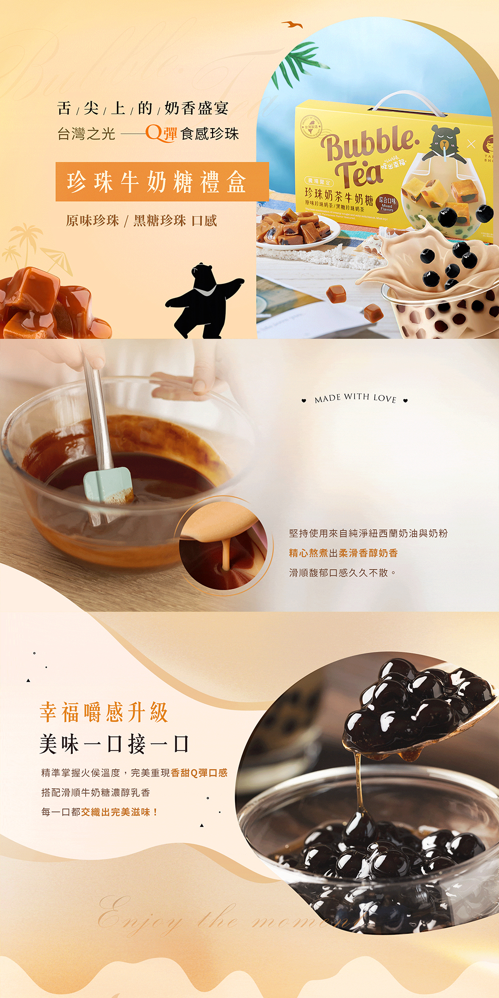 加入製成牛奶糖,每顆都吃的到Q彈珍珠。