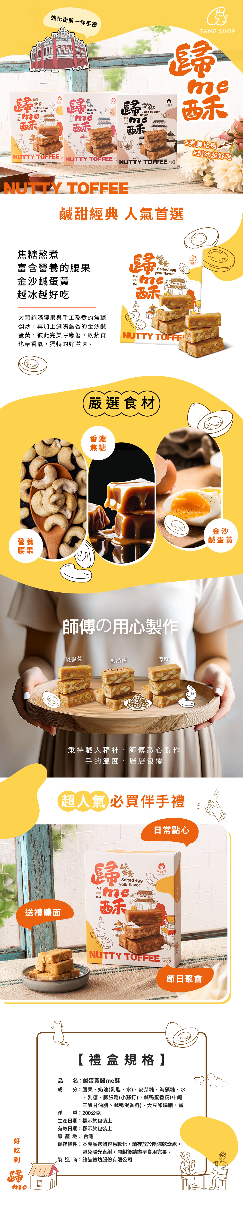 大顆飽滿腰果與手工熬煮的焦糖翻炒,再加上涮嘴鹹香的金沙鹹蛋黃,